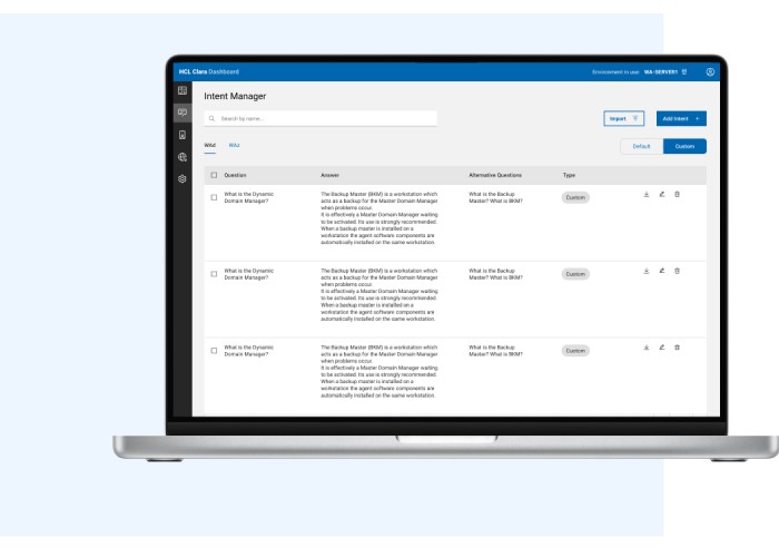 HCL Clara, an Intelligent Virtual Assistant, understands human input, provides answers by tapping into a rich, specialized knowledge base. HCL Clara allows direct interaction with HCL Workload Automation in natural language to execute routine tasks and enables users to quickly learn how to use and troubleshoot the product.